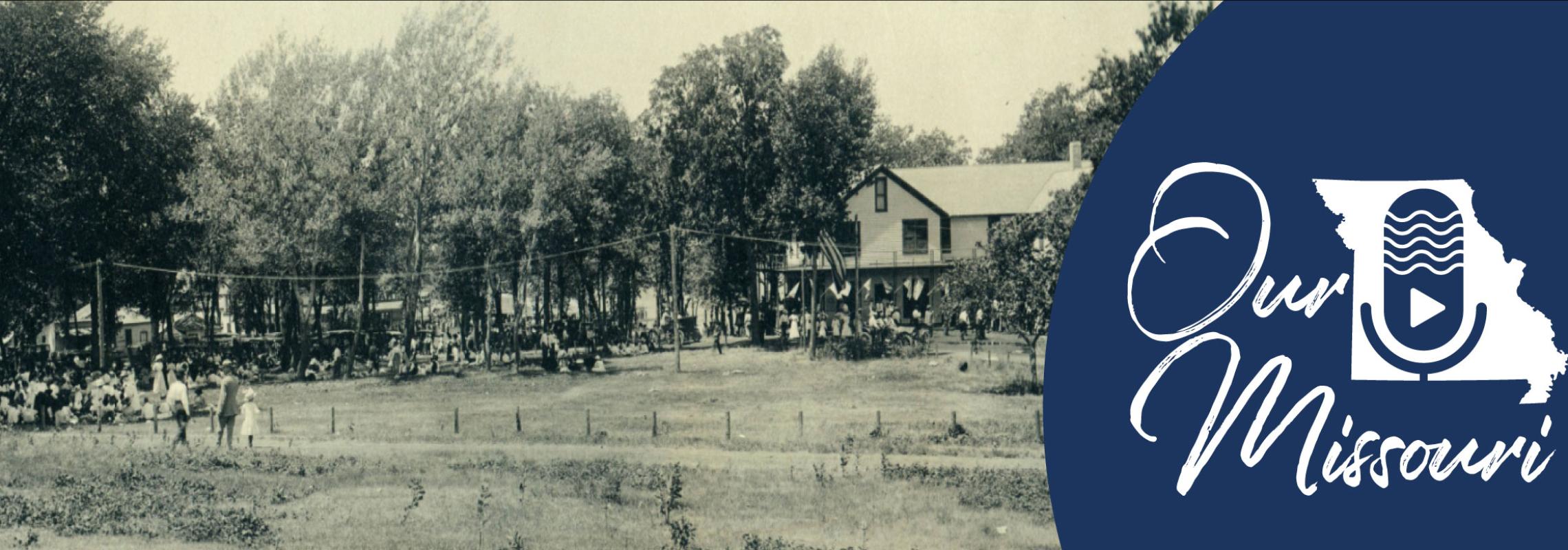 Banner Image: Panoramic view of the front lawn of the Arnolds Park Hotel, Arnolds Park, Iowa, ca. 1912 [University of Missouri School of Journalism Scrapbook (P0162), SHSMO]